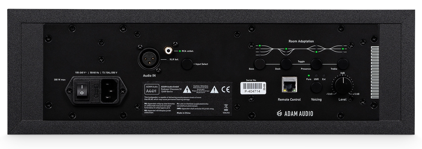 A44V je monitor s nízkým profilem a 19“ šířkou, je tak vhodný i pro instalaci do rackového zařízení pro mobilní nahrávací studia. Dvoupásmový studiový monitor disponuje dvěma 4“ woofery s MLM vlákny a ručně vyrobeným X-ART tweeterem, které nabízí kromě širokého frekvenčního pásma maximální výkon až 130 W. Zadní panel obsahuje XLR a RCA konektory, Ethernet RJ45, ovladač hlasitosti, dva režimy přehrávání (Pure/UNR) a čtyři knoby pro nastavení EQ Room Adaptation, Součástí balení je navíc tříměsíční plná verze softwaru Sonarworks pro změření akustiky místnosti.