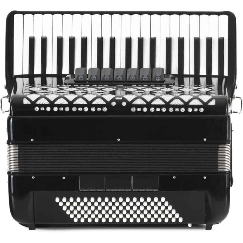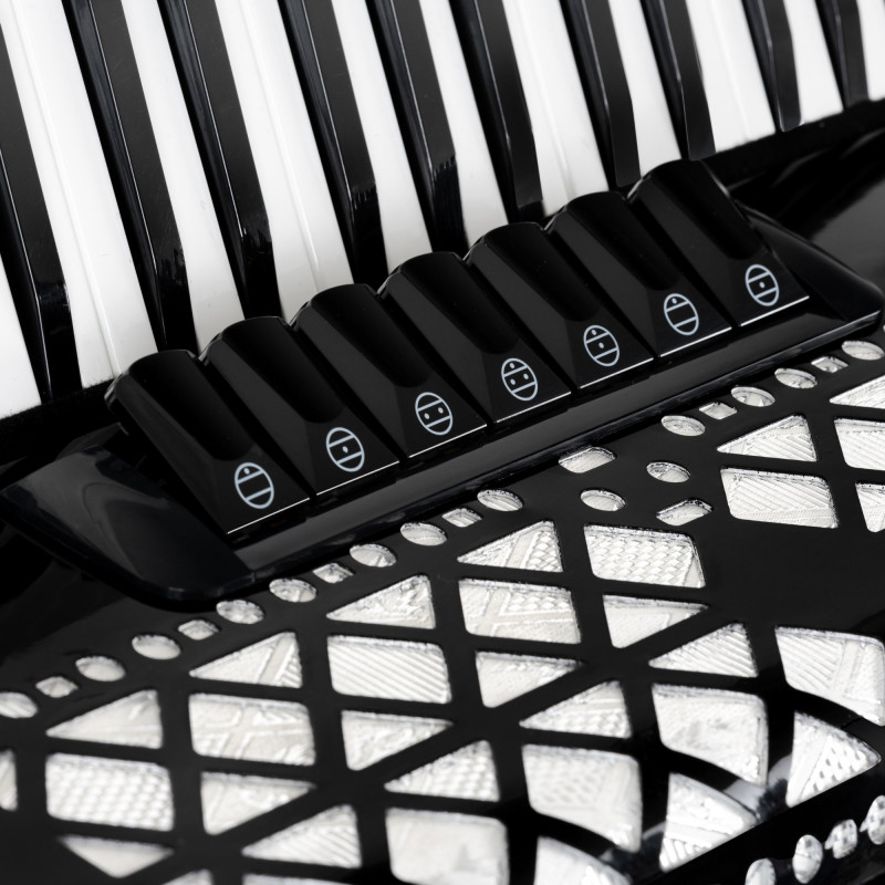 - Rozsah: F-f"' (jako u většiny 96-basových akordeonů Hohner)