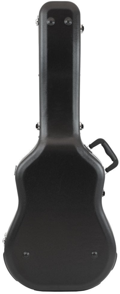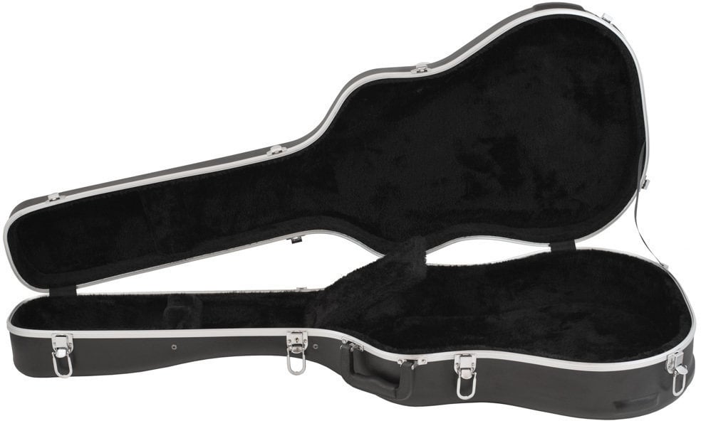 Pevný plastový kufr pro Dreadnought kytaru vybaven pěti zámky, měkkou polstrovanou výstelkou, přihrádkou pro příslušenství a obvodovými hliníkovými zpevňovacími lištami. Ergonomicky tvarovaná rukojeť.