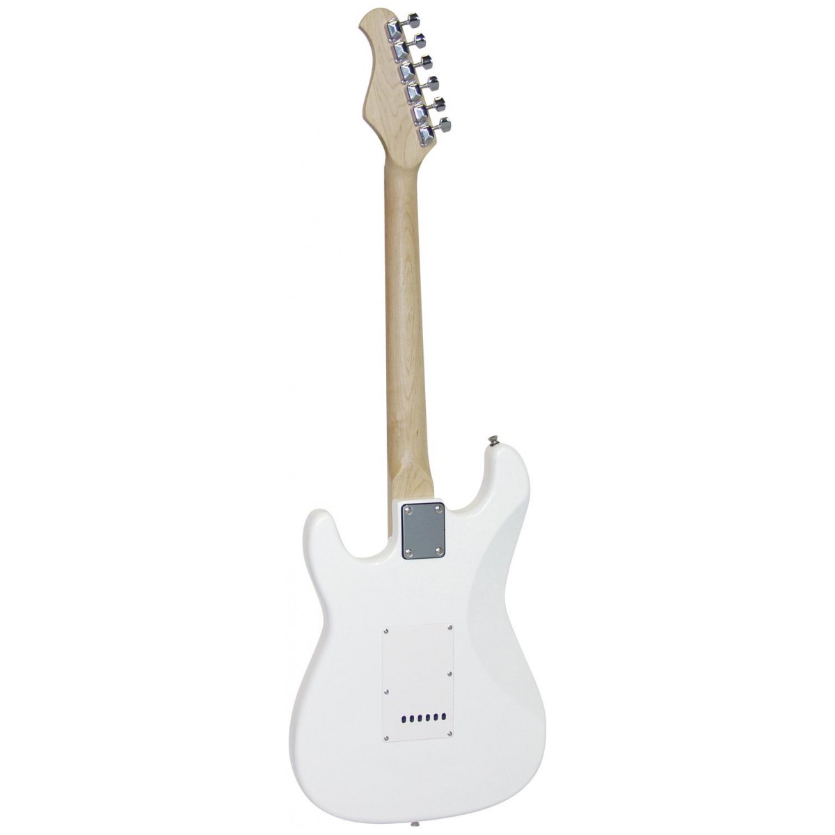 Elektrická kytara typu Strat. Tělo jasan, šroubovaný krk javor, menzura 648 mm, hmatník blackwood, 22 pražců, kobylka klasické tremolo typu Strat, chromovaná mechanika, 3x jednocívkový snímač (single coil), 1x ovládání hlasitosti, 2x ovládání tónu, 5-ti polohový přepínač. Barva bílá.