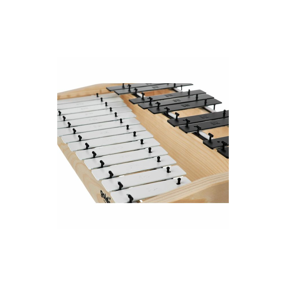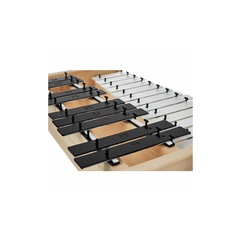 Chromatický metalofon s 22 černými a bílými ocelovými kameny a tónovým rozsahem c2 - a3. Ozvučná skříň je vyrobena ze smrkového dřeva. Součástí jsou i 2 dřevěné paličky.