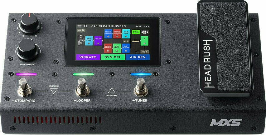 Super kompaktní, ale nabitý velkým výkonem Headrush, MX5® je neuvěřitelně snadno použitelný a realisticky znějící model kytarových FX a zesilovačů, který je ideální pro stolní počítač, studio a pódium. Headrush MX5 s jemně vyladěným vícejádrovým procesorem a 4-palcovým dotykovým displejem s vysokým rozlišením usnadňuje vytváření tónů a umožňuje vám dotýkat se, táhnout a přesouvat a okamžitě vytvářet a upravovat váš dokonalý tón v bezprecedentně realistickém a intuitivním způsobu.