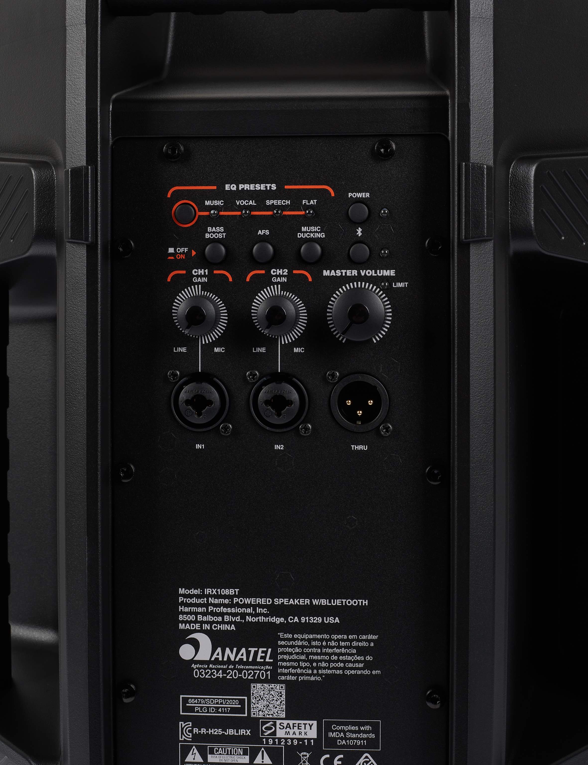 JBL IRX108BT je výkonný aktivní reproduktor od firmy JBL nabízející prvotřídní kvalitu a velmi transparentní zvuk, který využijete při zvučení venkovních nebo vnitřních koncertů, konferencí a garden párty. Reproduktor obsahuje dvoukanálový mixpult, kde kromě flexibilní konektivity naleznete tlačítka čtyř EQ presetů pro optimální zvuk a možnost bezdrátového připojení prostřednictvím technologie Bluetooth 5.0. Reprobox navíc disponuje intuitivním systémem na potlačení zpětné vazby (AFS) a pomocí jednoho zmáčknutí automaticky ztlumíte hudbu (Music Ducking) a dáte tak prostor mluvenému slovu, což ocení především moderátoři a mluvčí při veřejných eventech nebo konferencích.