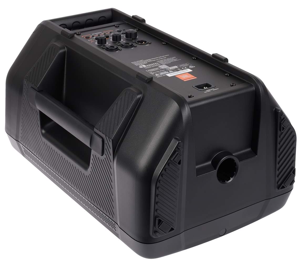 Uvnitř odlehčené konstrukce z odolného plastu se ukrývá 8“ basový reproduktor s maximálním výkonem až 1300 W, ten je potom chráněn robustní ocelovou mřížkou proti poškození. Zadní panel obsahuje dva kombinované XLR/Jack konektory se separovanými ovladači Volume pro připojení mikrofonů, bezdrátových systémů nebo hudebních nástrojů. Dále zde naleznete XLR výstup pro připojení do dalšího PA, tlačítka pro spuštění automatického potlačení zpětné vazby, ztlumení hudby nebo pro firmu JBL typického Bass Boost.