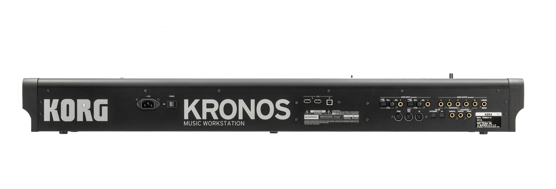 - Výstupy 2x Main (Jack TRS 6,3 mm, L/R), 4x Individual (Jack TRS 6,3 mm), 1x Headphones (Jack TRS 6,3 mm), S/P DIF, MIDI Out, MIDI Thru, 3x Pedal (Damper, Switch, Pedal), 2x USB-A, USB-B