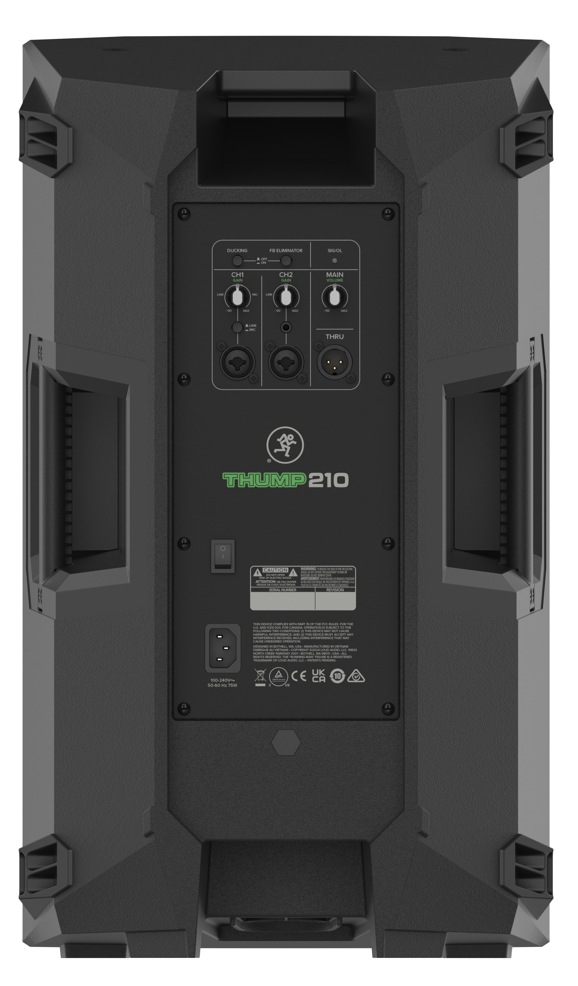 Zkosená zadní strana umožňuje box využít pro stage monitoring nebo jej lze nasunout na tyč do průměru 36 mm. Zabudovaný univerzální zdroj zajišťuje stabilní napájení z jakékoliv sítě na světě.