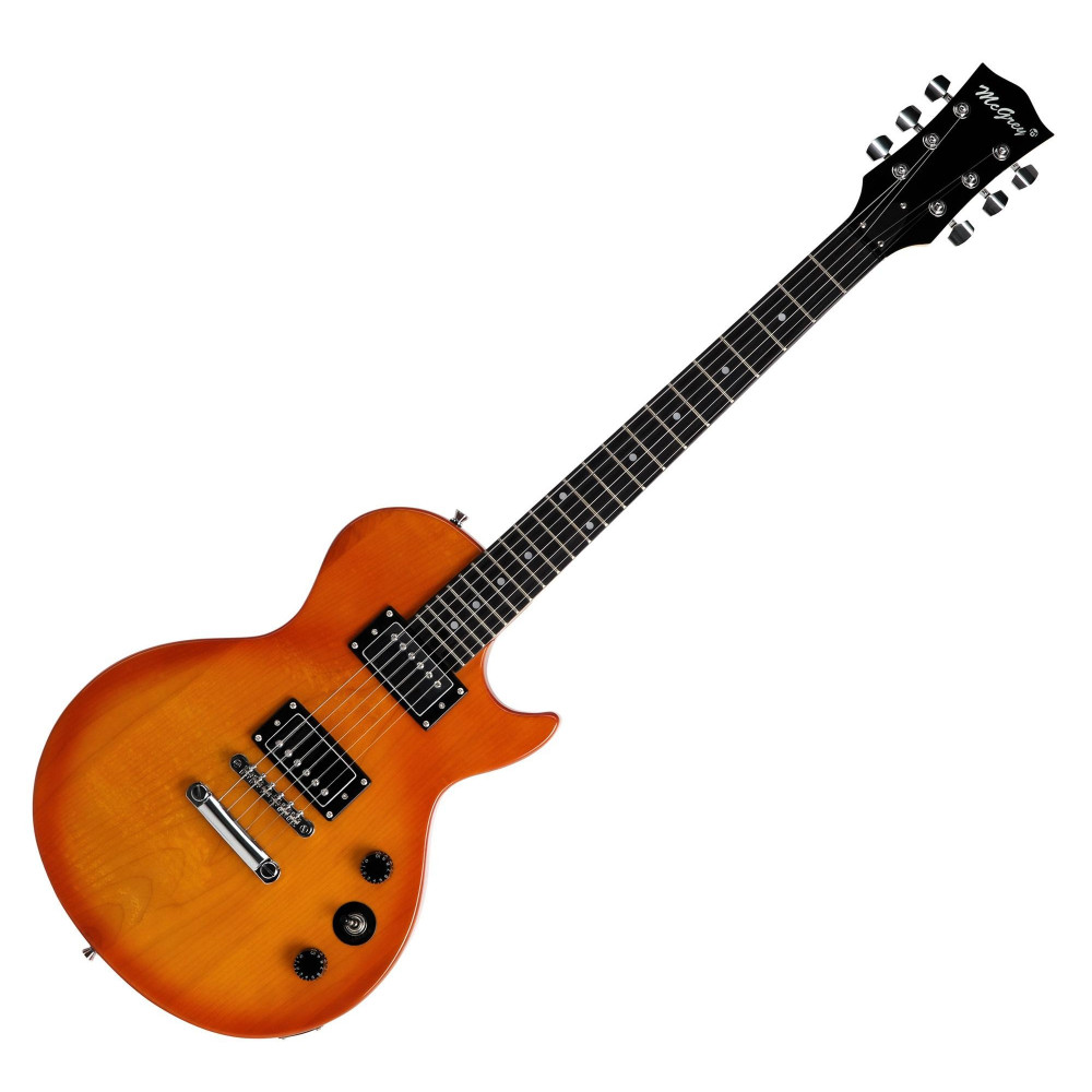 McGrey Rockit Single Cut elektrická kytara s oranžovou povrchovou úpravou, 2 snímači Humbucker, 3-polohovým přepínačem. Set obsahuje 10 wattový (RMS) kytarový zesilovač s konektorem pro sluchátka a zkreslením. Nechybí praktická kytarový obal, klipová ladička, kabel, popruh, náhradní struny a kabel.