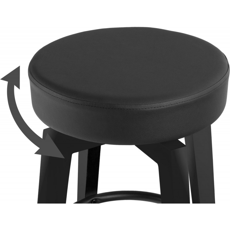 Tato stylová taburetka se perfektně hodí do vašeho obývacího pokoje, zkušebny, hudebny nebo na párty a nabízí otočné, kulaté sedátko o průměru 35 cm. Potažené černou umělou kůží nabízí nejen příjemný komfort sezení, ale také se snadno čistí.