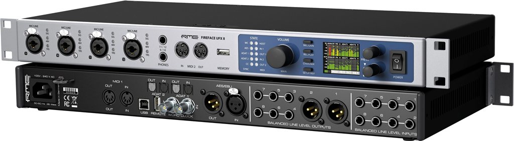 Fireface UFX II nabízí 12 analogových in/out, ADAT a AES/EBU rozharní. K počítači se připojuje pomocí USB 2.0. Funguje i jako samostatný rekordér / player na USB flash nebo HDD.