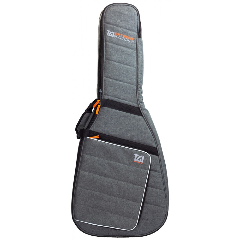 Obal na akustickou kytaru typu dreadnought řady TGI Extreme s bohatým 20 mm polstrováním, v šedém provedení s velurovou podšívkou, velkou kapsou na příslušenství, rukojetí a pohodlnými popruhy na záda. Popruhy lze velmi prakticky v případě nošení v ruce skrýt do zadní části obalu. Nechybí fixace krku uvnitř obalu, díky čemuž je Váš nástroj maximálně chráněn. Rozměry - délka 107 cm, šířka 47 cm, hloubka 17 cm.