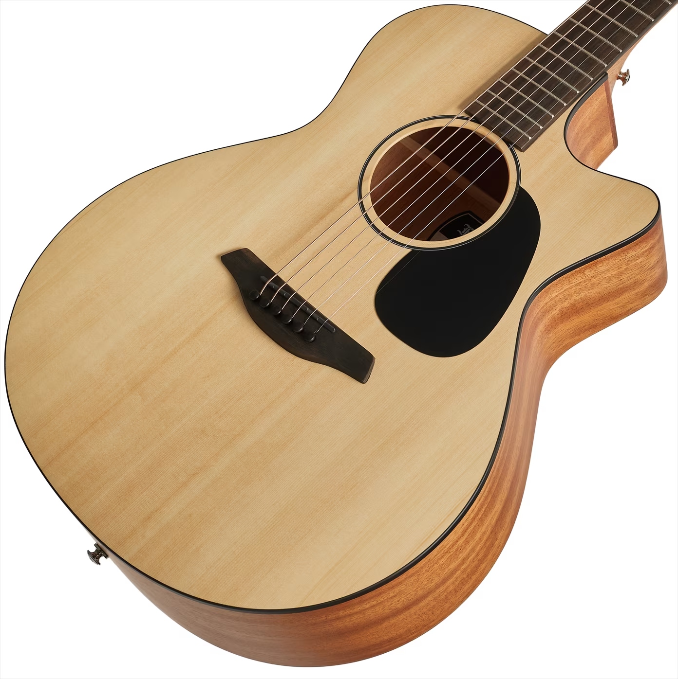 Orientaci na ebenovém hmatníku usnadňují boční bodové poziční značky. Přesné a stabilní ladění zaručují firemní chromované mechaniky s převodovým poměrem 1:18. Pěkné zpracování podtrhuje obvodová lemovka těla, pickguard a rozeta v černém kontrastním provedení.